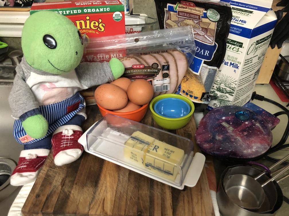 - Milk, butter, oil and whatever other your waffle mix calls for to make the batter